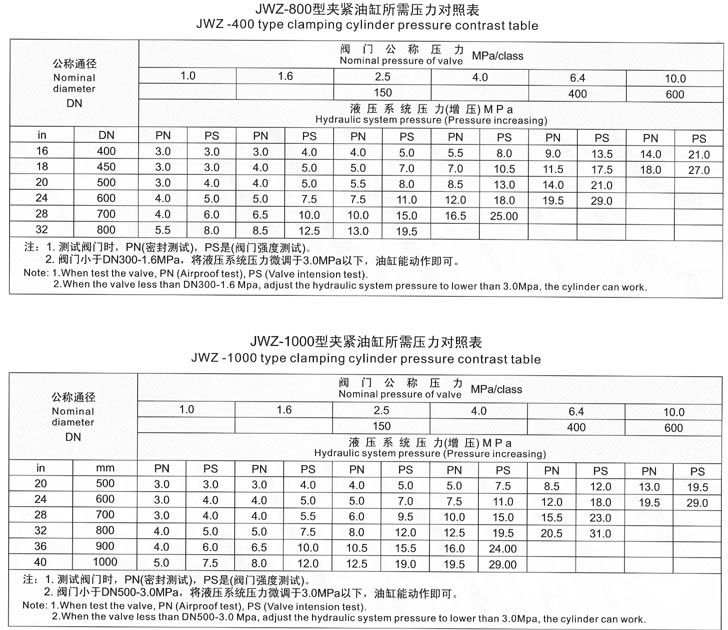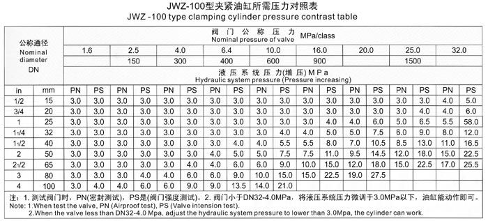 五、測試閥門時(shí),首先根據(jù)被試閥門試驗(yàn)壓力,要求參照《壓緊油缸所需壓力對照表》中液壓壓緊系統(tǒng)壓力值,進(jìn)行增壓壓力調(diào)節(jié),嚴(yán)禁增壓壓力值超高、防止被試閥門變形損壞。