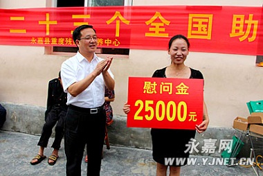 今年的 5月19是第23個全國助殘日,永嘉縣委副書記縣長姜景峰率縣殘聯(lián)理事長鄭文杰、縣委農(nóng)辦領(lǐng)導(dǎo)、和浙江優(yōu)機(jī)機(jī)械科技有限公司總經(jīng)理李珍武等專程到縣重度殘疾人托養(yǎng)中心、東城街道峙口村、長源村慰問。