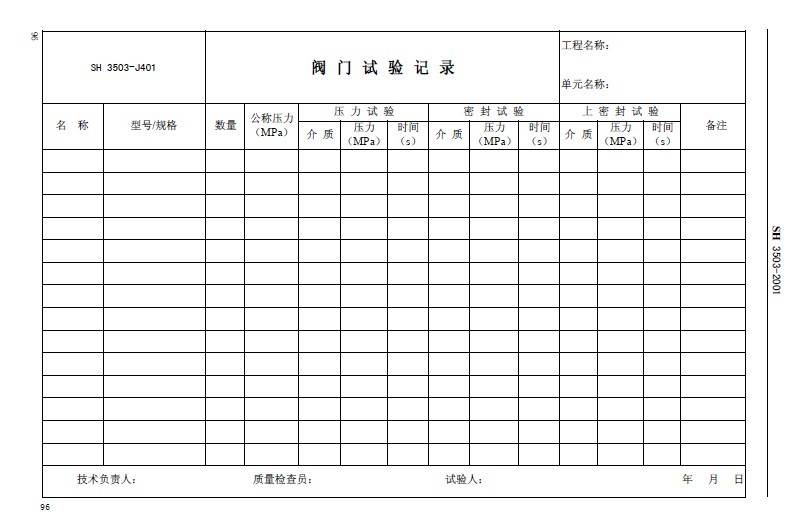 閥門試驗表格用于閥門出廠、安裝前閥門試壓檢測的記錄依據(jù),對閥門產(chǎn)品出廠和使用后唯一留底的性能指標數(shù)據(jù)檔案,廣大客戶可以下載參考此表格,特優(yōu)機械-技術(shù)部