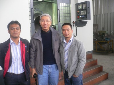 圖4:歐颯公司創(chuàng)始人CEO王先生(圖中)歐颯公司技術(shù)監(jiān)理工程師DOGUA(圖左1)和李總一起合影留念